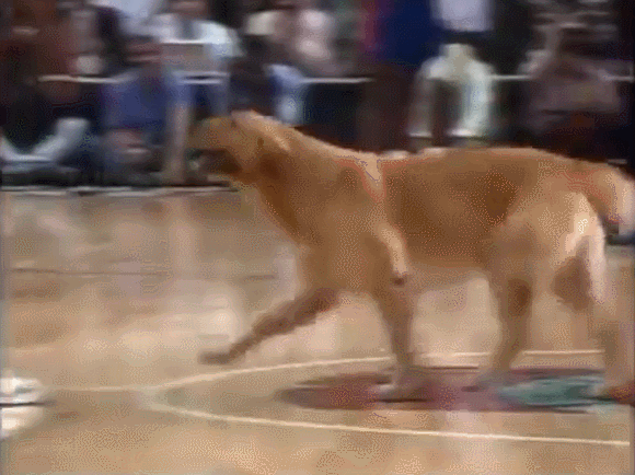April 24, 1992 Eastern Conference 1Rnd Game1, 3쿼터에 경기장으로 들어온 개를 들어 옮기는 로드맨