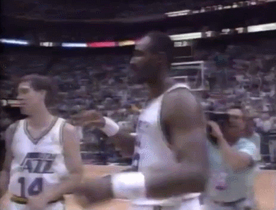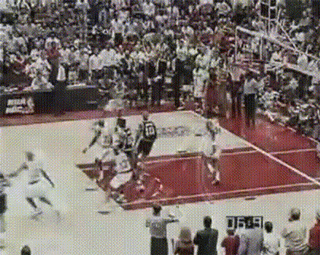 April 19, 1994 vs HOU, 버저비터 성공 후 팬들과 기쁨의 포옹