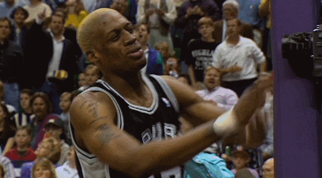 스퍼스에서의 로드맨은 반항아 이미지 그 자체였다...