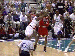June 5, 1998 NBA Finals Game2 에서 칼 말론과의 몸싸움(?)ㅋㅋ 이건 봐도봐도 웃김ㅋㅋ