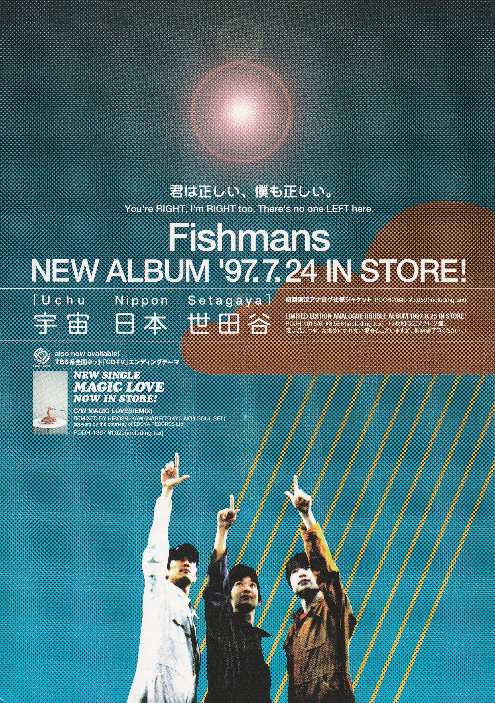 6집 <空中キャンプ>, <Long Season> 발매 이후 공연 일정을 소화하느라 멤버들의 새로운 앨범 작업은 늦어졌다. 이런 상황에서도 사토 신지는 고군분투하며 홀로 7집 앨범에 대한 구상과 곡 작업을 진행했고 1997년 7월 싱글 <MAGIC LOVE>와 7집 정규 앨범 <宇宙 日本 世田谷>를 발매한다. 앨범을 프로듀싱하며 사토 신지와 ZAK은 갈등은 깊어졌고 ZAK은 10월 맥시 싱글 <WALKING IN THE RHYTHM>를 마지막으로 Fishmans와의 작업을 마무리한다.